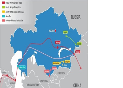 بخش دوستیک موئینتیDostyk–Moiynty حدود ۸۳۶ کیلومتر است. احداث خطوط دوم باعث افزایش ظرفیت تا پنج برابر خواهد شد.
