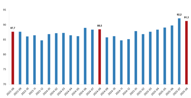 شرایط تجارت خارجی در اوت  ۲۰۲۵، ۹۱.۳ بود.
