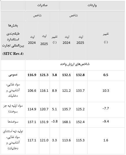 شاخصهای ارزش واحد و مقدار واردات، اوت  2025