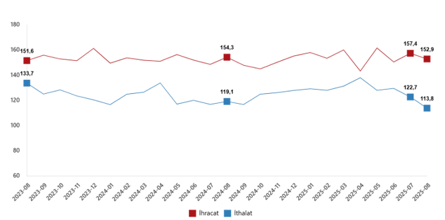آمار شاخصهای تجارت خارجی در ترکیه، اوت  ۲۰۲۵