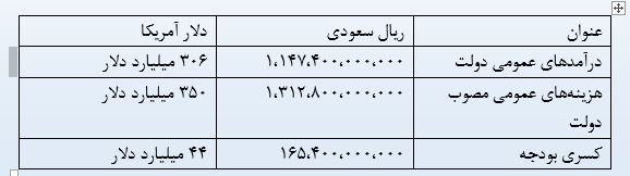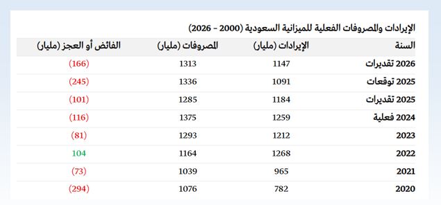 هزینه‌ها، درآمدها و کسری بودجه سال 2026 عربستان در قالب جدول ذیل قابل احصاء می‌باشد: