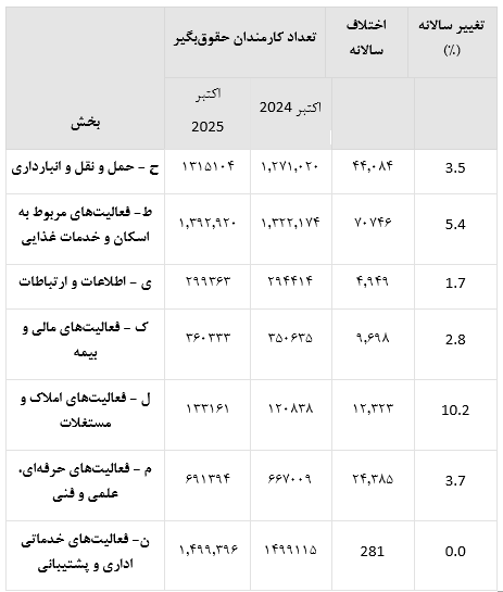کارمندان حقوق بگیر، اکتبر ۲۰۲۵ (هزار نفر)
