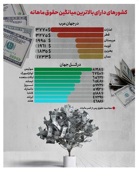 اینفوگرافیک؛ کشورهای دارای بالاترین میانگین حقوق ماهانه