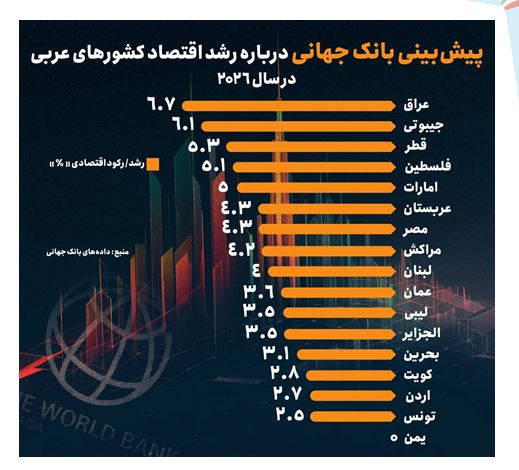 اینفوگرافیک؛ پیش‌بینی بانک جهانی درباره رشد اقتصاد کشورهای عربی در سال 2026