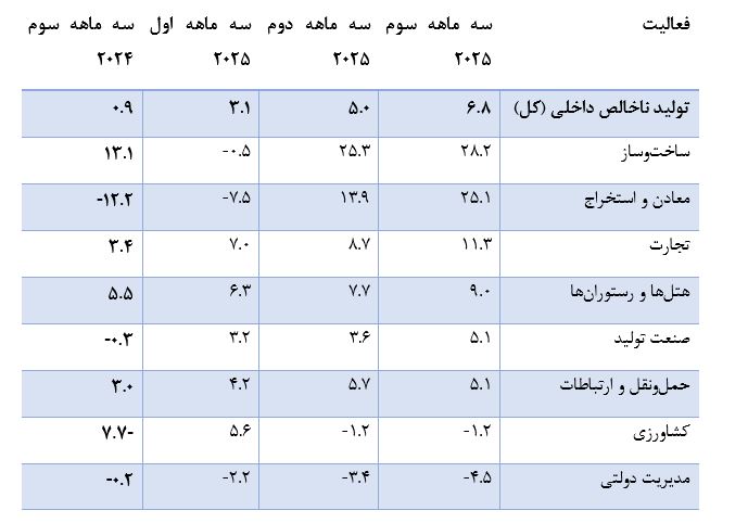 رشد تولید در سه ماه سوم سال 2025 با تمرکز بر بخش‌های کلیدی زیرساخت و خدمات حاصل شد.