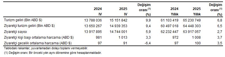 آمار گردشگری ترکیه، سه ماهه چهارم : اکتبر - دسامبر و سالانه، ۲۰۲۵